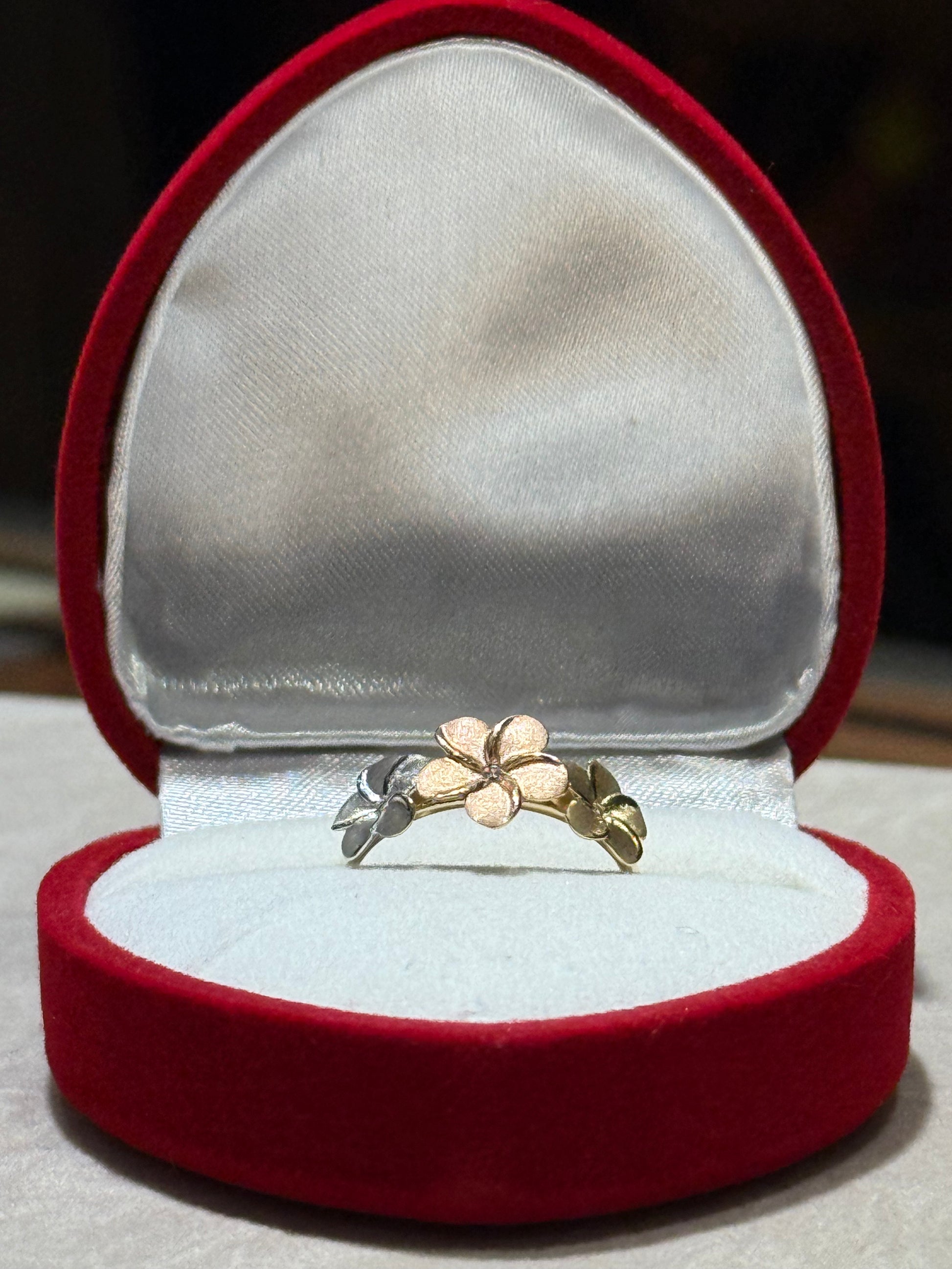 14k Hibiscus Flower Tri-Gold Ring